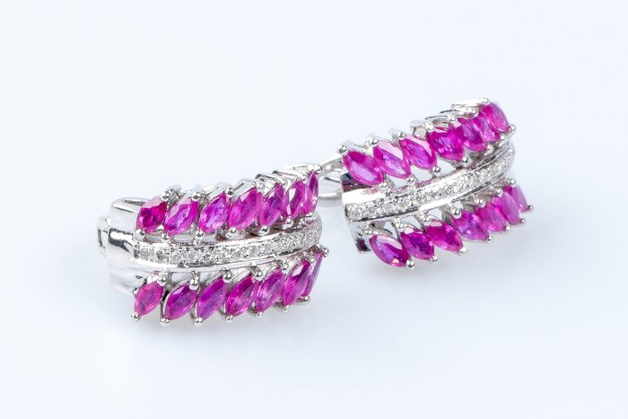 28 marquise geslepen robijnen van elk 0,04 karaat, ofwel 1,12 karaat in totaal