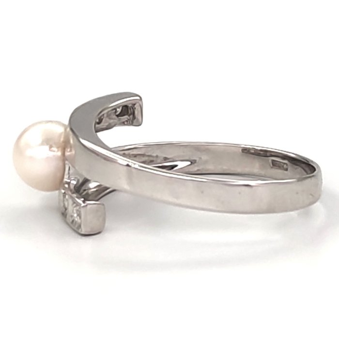 Ring in 18K witgoud met 4 diamanten van 0.06 ct totaal en 1 Akoya parel 6.64 mm