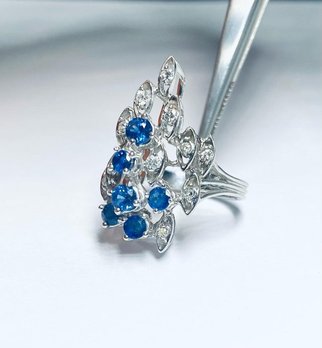 Vintage ring in 18 kt witgoud.