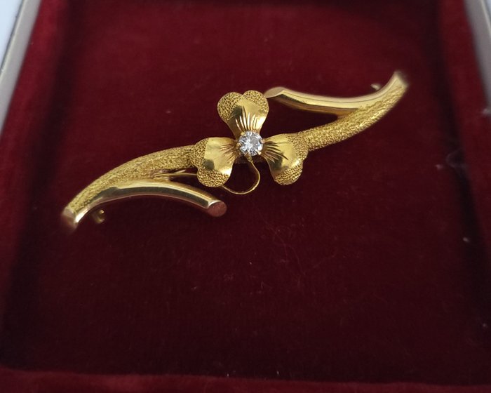 19.2 karaat Geel goud - Broche - 0.10 ct Diamant