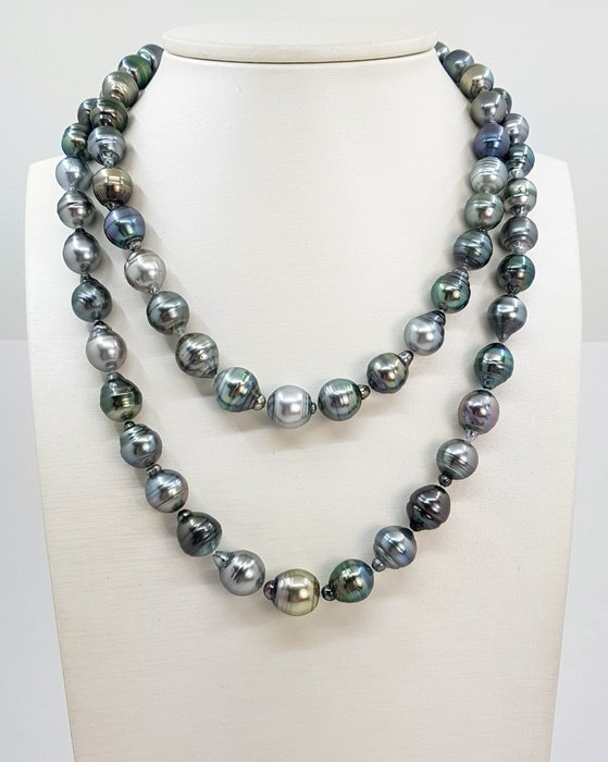 Deze Tahiti-parels worden gekweekt in de zwartlipige Pinctada margaritifera-oester in de tropische wateren van Frans-Polynesië en zijn met de hand geselecteerd op kwaliteit. De glans op elke parel is uitstekend.