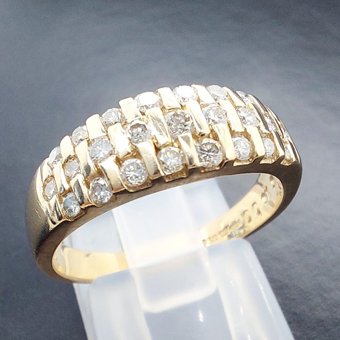 Houd er rekening mee dat sommige foto's een close-up van de ring zijn om zoveel mogelijk details te geven. Lees de afmetingen voor een nauwkeurige maat en beschrijving.