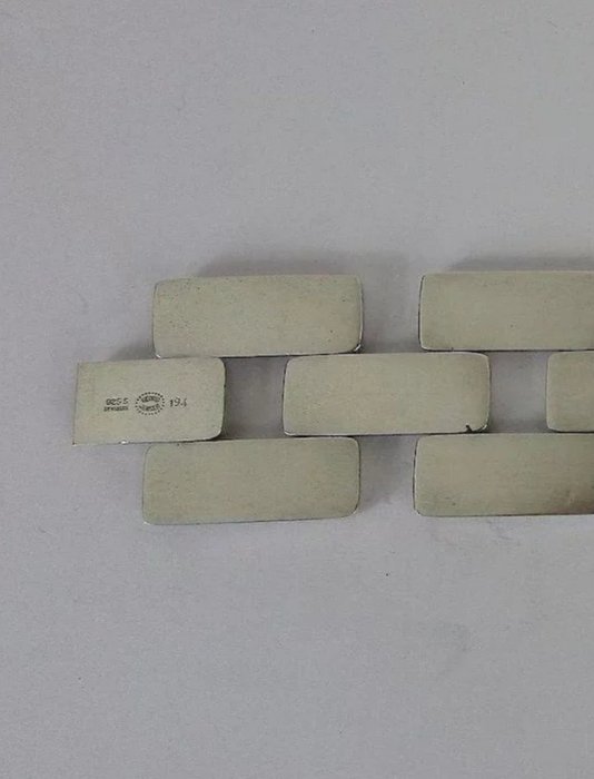 De armband is gemerkt met 925 S, is gestempeld Georg Jensen in een ovaal van stippen. Het is ook gestempeld Denemarken (land van herkomst) en draagt het ontwerpnummer 194.