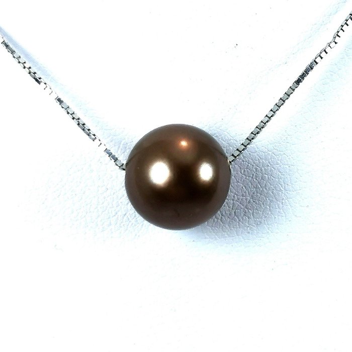 Prachtige chocolade Tahiti gekweekte parelketting in WG18K ronde vorm Ø 10x11 MM. Lengte 40 cm (Raz-de-cou).