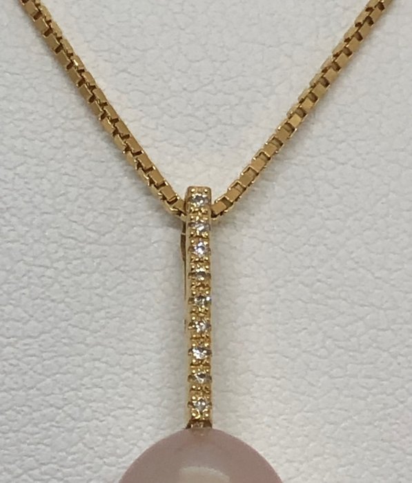 Prachtige FreshWater Drop Pearl ketting in 18K Yellow Gold & diamanten 0,04cts - fantastisch lichtroze met mooie tinten. Maat 9,5 mm