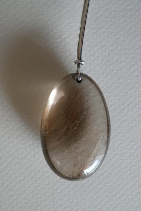 Prachtige sterling zilveren druppelvormige rutielkwarts hanger van Georg Jensen, ontwerper Torun Bülow-Hube. De sieraden waren haar hele leven van mijn vrouw. Gekocht in 1982, nauwelijks gedragen, gebruikssporen, in zeer goede staat.