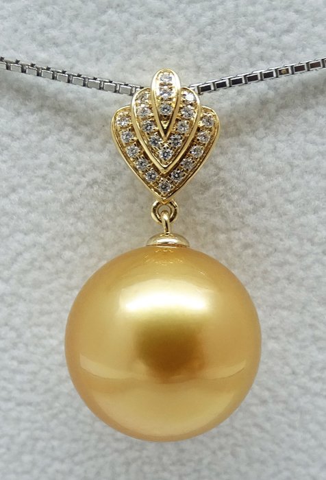 De parel heeft een natuurlijke 24K kleur, een maateenheid voor de fijnheid van gouden parels, de hoogst mogelijke verzadiging. Met een uitstekende spiegelachtige glans is de parel in Tip-Top "AA+ tot AAA-kwaliteit" - Gegarandeerd de beste kwaliteit. Het is een prachtig accessoire voor avondkleding of speciale gelegenheden.