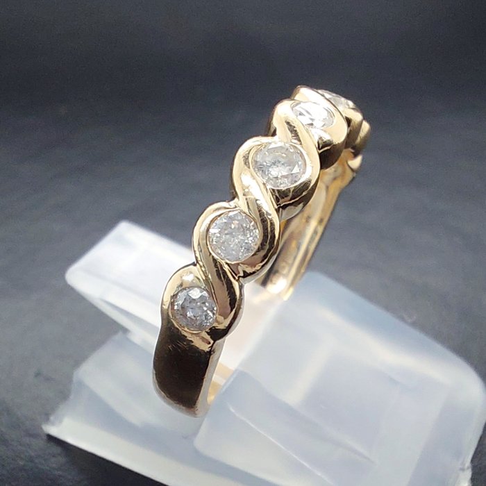 Prachtige Vintage 9kt Geel Goud & Natuurlijke 0.33ct Diamant Zeven Steen Eternity Wave Verlovingsring.