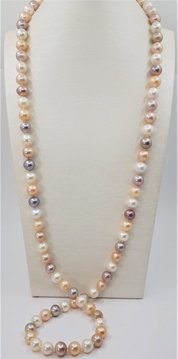 Individueel geknoopt tussen elke parel voor de veiligheid, de ketting is afgewerkt met een veilige zilveren sluiting.