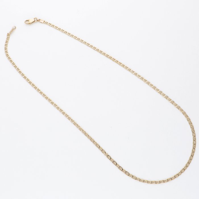 Geelgouden guccischakel collier. Het collier heeft een schakelbreedte van ca. 2.5 mm.