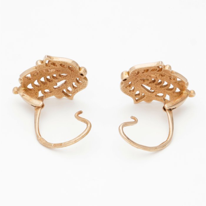 Roségouden vintage oorbellen. De oorbellen zijn sierlijk vormgegeven en zijn voorzien van opengewerkte details. De oorbellen zijn voorzien van een tijdloos design.