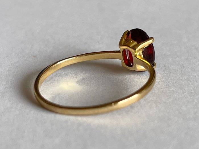 Vintage solitaire ring gemaakt in 18 kt geelgoud, versierd met een centrale granaat set.