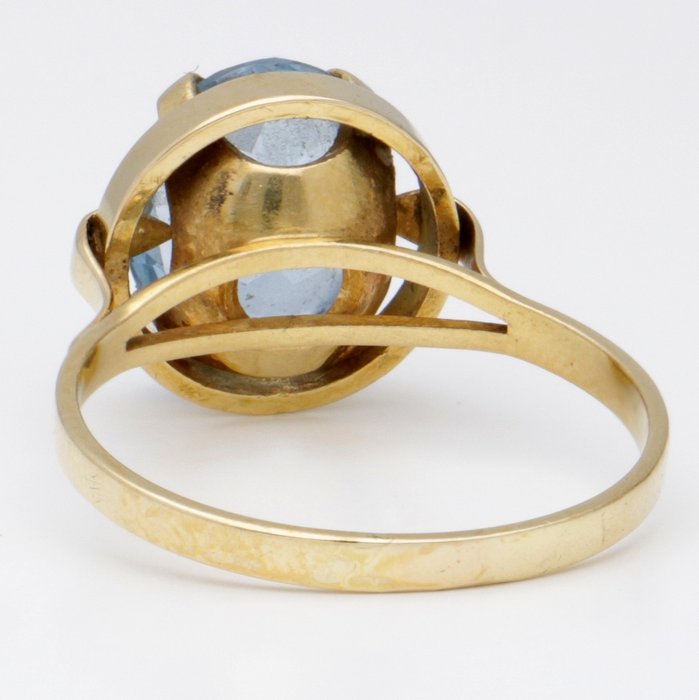 Geelgouden ring, de ring is bezet met een gefacetteerde synthetische spinel van ca. 3.31 ct. De spinel is gezet in een chaton zetting. De ring is voorzien van een tijdloos design.