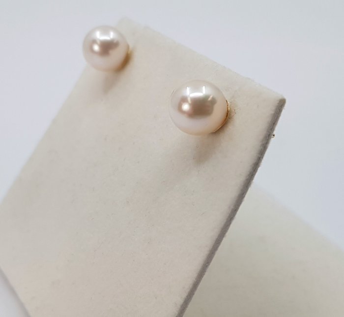 Geproduceerd door de Pinctada Fucata-oester in de warme wateren van Japan, hebben deze parels een natuurlijke, warme, heldere glans en zien er prachtig uit als knopjes op het oor.