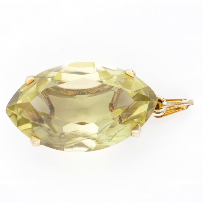 Geelgouden hanger, de hanger is bezet met een gefacetteerde citrien van ca. 19.35 ct. De citrien is gezet in een open kastzetting.