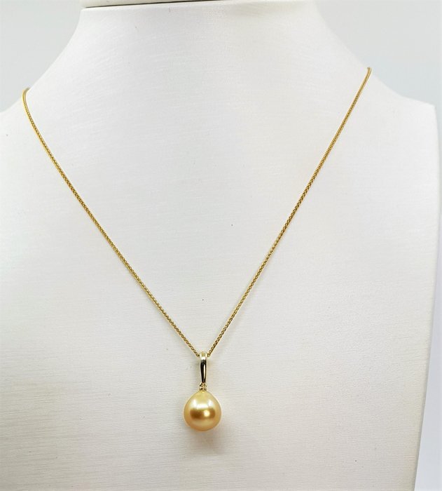 Deze parel komt uit de warme oceanen van Australië en is geselecteerd vanwege zijn mooie formaat en zijn natuurlijke magnifieke diepgouden kleur en heldere glans.