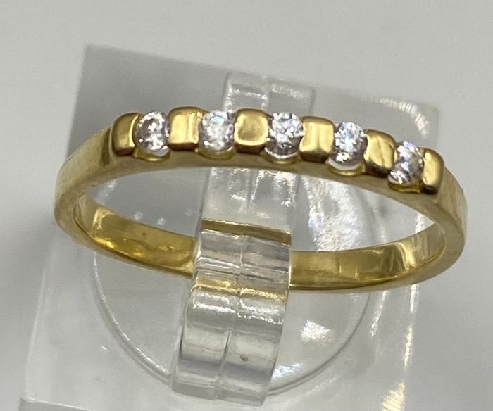 18kt geelgouden ring met briljant geslepen diamanten van totaal 0.16ct.