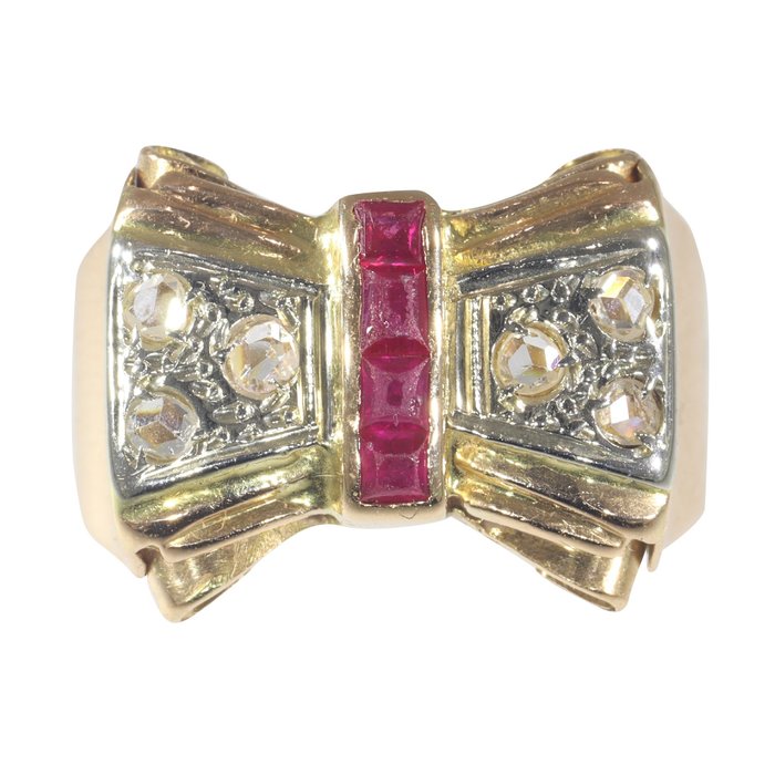 Soort juweel: Vintage Fifties Retro ring met diamanten en robijnen