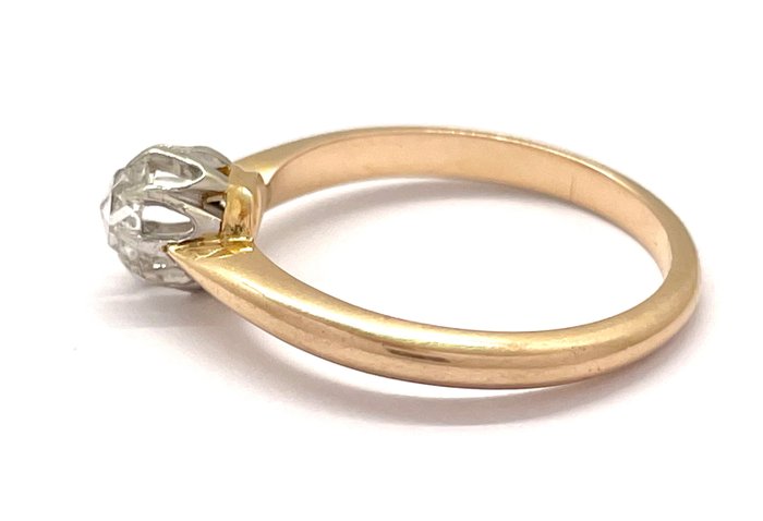 Versierd als solitair met een prachtige Antwerpse roosgeslepen diamant van circa 4,5 / 4,7 mm ofwel 0,40 karaat