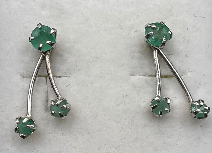 18kt witgouden oorbellen met briljant geslepen smaragden.