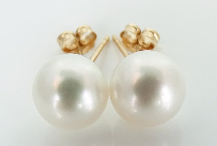 Zeldzame enorme Japanse Akoya gekweekte parel 9 mm oorknopjes Topsortering, 18K geel goud (GEEN RESERVEPRIJS)
