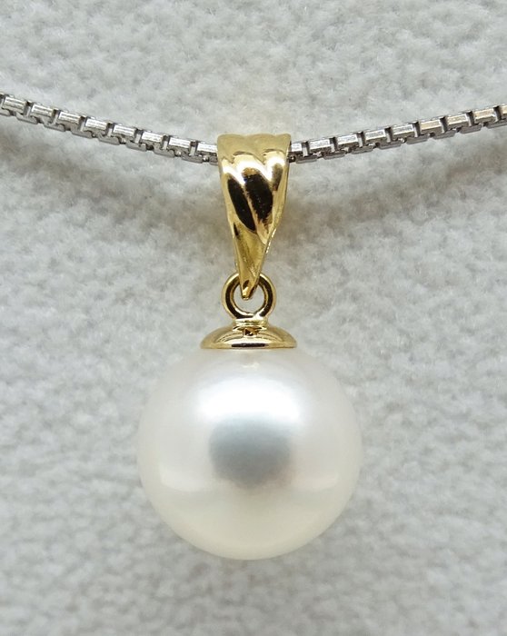 South Sea Cultured Pearl 9,54 mm hanger Ture AAA-classificatie, 18K geel goud (GEEN RESERVEPRIJS)