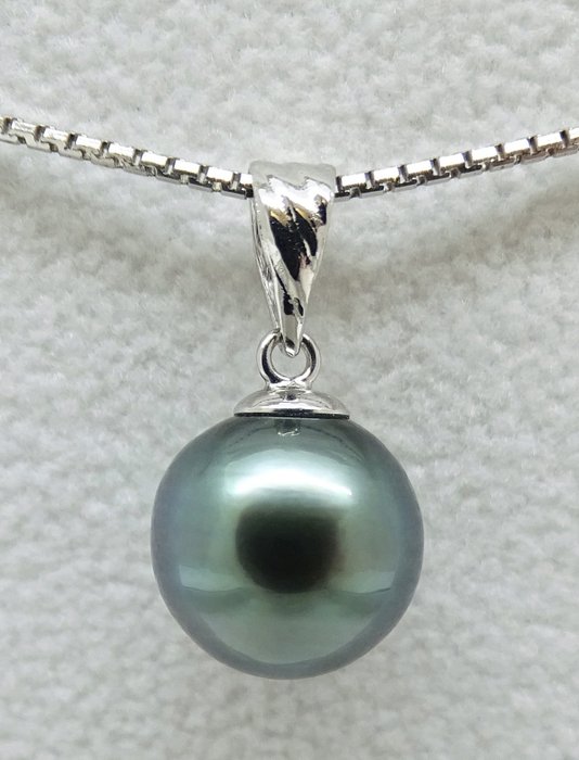 Glorieuze blauwe Tahitiaanse parel 9,65 mm hanger, 18K witgoud (GEEN RESERVEPRIJS)