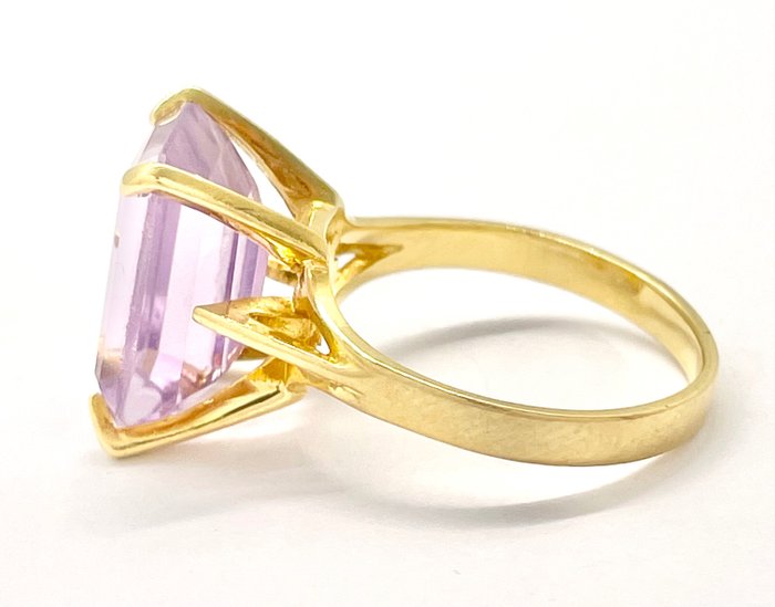 Versierd met een grote smaragd geslepen Amethist van ongeveer 14 x 10 mm