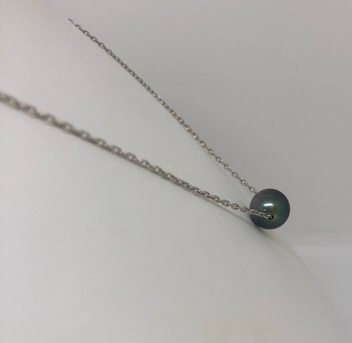 Prachtige Tahitiaanse Parel met een Witgouden 18K ketting. De parel beweegt langs de ketting en brengt beweging en licht in elke outfit - maat 9x9,5 mm