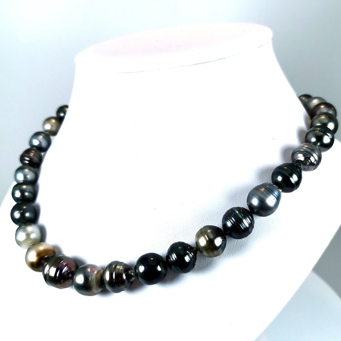 Prachtige veelkleurige Rainbow ketting uit Frans-Polynesië - Tahiti gekweekte parels in barokvorm van Ø 11 tot 14 MM. Lengte 46,5 cm.