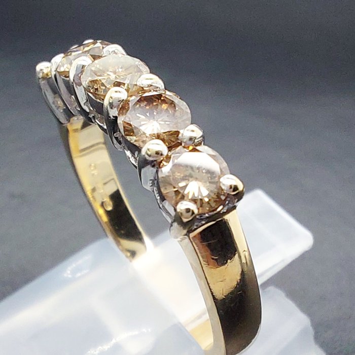Edelsteen: 5 x natuurlijke rond geslepen mooie bruine diamanten, elk met een diameter van 3,8 mm met een gecombineerd totaal karaatgewicht van ongeveer 1,00 karaat.