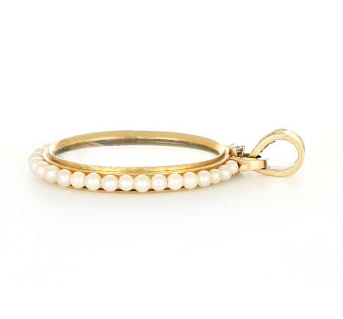 18kt gouden hanger met handbeschilderde diamanten en kralen.
