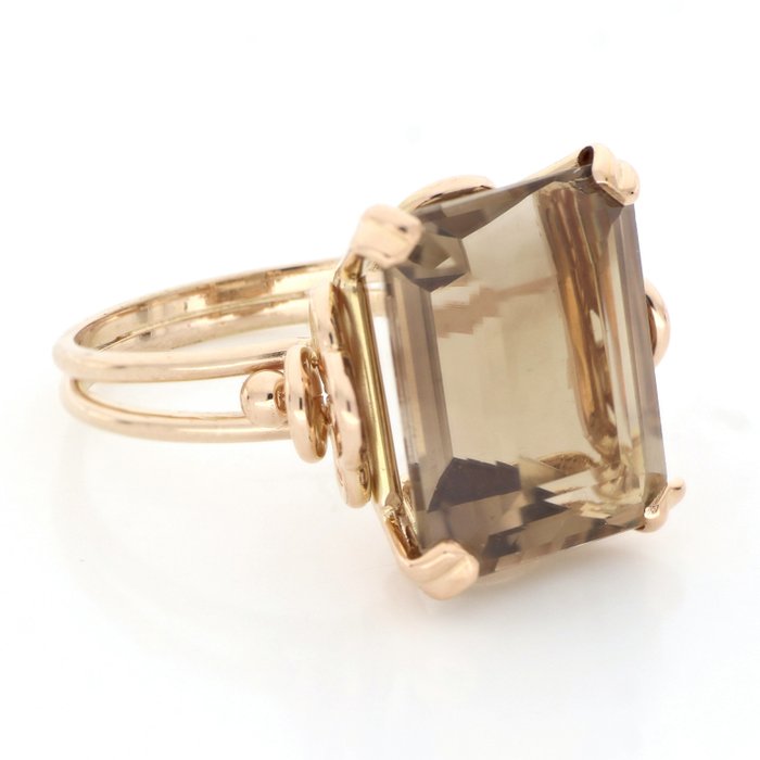 Hoofdsteen: 1 smaragd geslepen kwarts met een gewicht van ongeveer 6,00 ct.