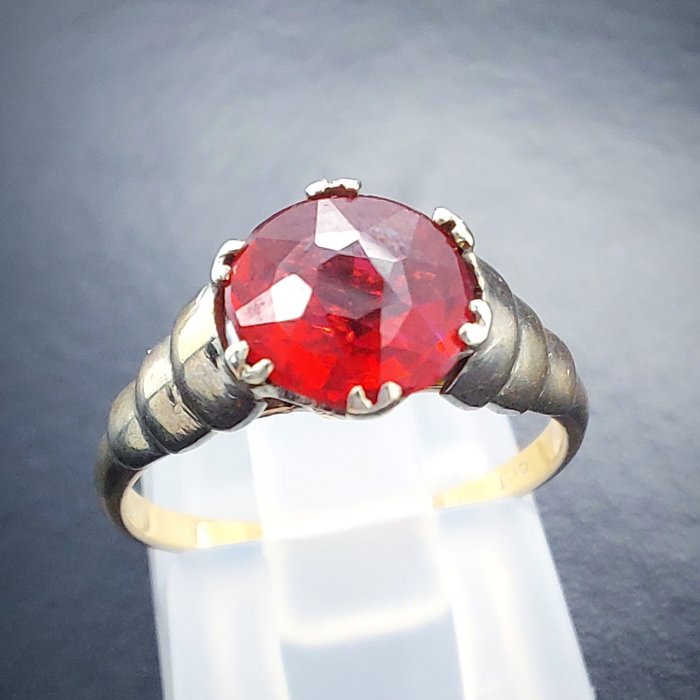 Prachtige vintage 9kt geelgouden & 1.30ct oud geslepen rode granaat Solitaire verlovingsring.