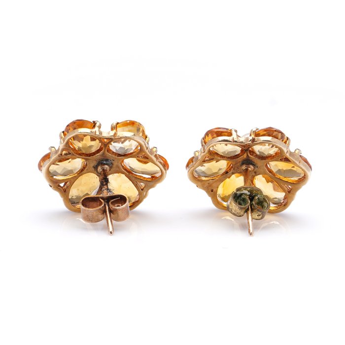 Vintage 9kt. geelgouden bloemdesign studs met citrienen en parels.