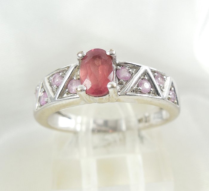 Witgouden ring bezet met Toermalijn en roze Saffieren