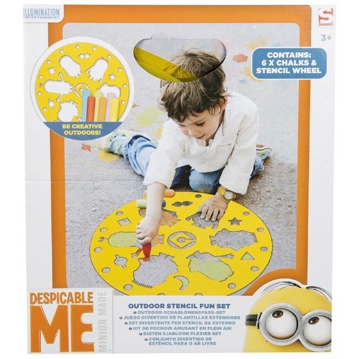 Inhoud: 6 Stoepkrijtjes en groot Minions teken sjabloon. Daarmee maak je de mooiste Minions-kunstwerken in de tuin of op de stoep! Geschikt voor kinderen vanaf 3 jaar. Afmetingen verpakking: 33 x 29 x 7 Cm.