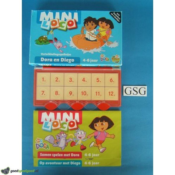 Set bestaande uit een mini loco basisdoos van 12 stenen met 2 boekjes. Het zijn de boekjes: samen spelen met Dora en op avontuur met Diego. Met LOCO, deze letters staan voor Leren Oefenen Controleren Ordenen leert uw kind belangrijke basisvaardigheden. Kompleet met originele opbergdoos. Geschikt voor de leeftijd van 4-6 jaar.