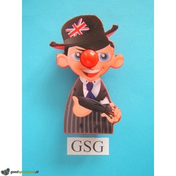 Uit de collectie van de Rode Neuzen Moppenfestival van de Efteling is dit de Engelsman. Dit figuurtje is afkomstig uit 2016.