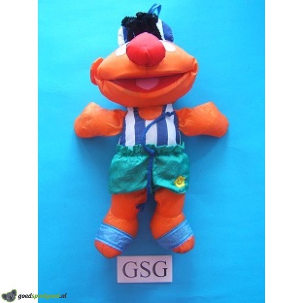 Samen met Bert vormt Ernie het bekendste koppel uit Sesamstraat. Ernie is geleed in en strand outfit. Door zijn pluche en leuke voorkomen is Bert een van de populairste knuffels van dit moment en is ca. 31 cm groot. Geschikt voor de leeftijd vanaf 3 maanden.