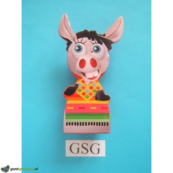 Uit de collectie van de Rode Neuzen Moppenfestival van de Efteling is dit Ezel. Dit figuurtje is afkomstig uit 2016.