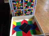 Houten Mozaïek set,-foto 3 - voor uren speelplezier - zonder doos, 3,50- Houten Mozaïek set,- foto 1 + 2 - 2 stukjes zijn van kunststof, 3,50