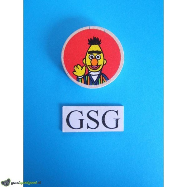 Houten schijf Bert. Kan onder andere gebruikt worden bij het spel 3x3 Ernie en Bert met het artikelnummer 0443012.