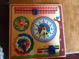 Kinderkalender, hout - zeer leerzaam, - om spelenderwijs kennis te maken met het begrip: seizoenen, dagen, maanden, klok, weer - - - kan opgehangen worden - z.g.a.n. 9,50 Per stuk