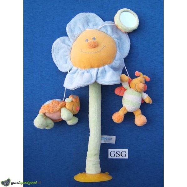 Kinderstoel plakker gemaakt van pluche. Uw kind kan spelen met het spiegeltje of met de dieren die aan de kinderstoel plakker hangen.