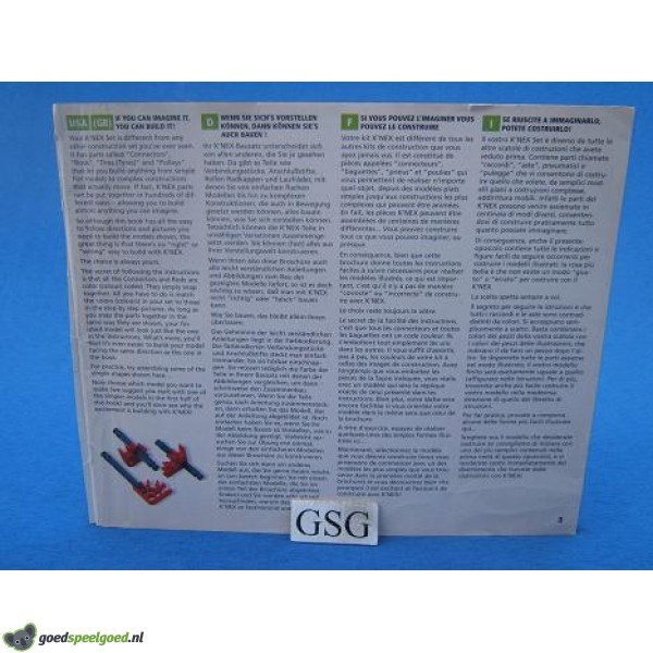 Bouwvoorbeelden boek voor het maken van 36 modellen. In dit boek staan simpele en komplexe voorbeelden zoals: numbers, fox, mouse, cat, snowflake, starburst, turtle, fish, tic-tac-toe, ocean liner, picture frames, ring toss game, tractor with harrow, helicopter, catamaran, chuck wagon, three wheeler, space shuttle, sport bike, formula car, construction vehicle, boss vehicle, basketball game, ferris wheel, sandracer, whirlabout en rocketship ride. Let op! Onderdelen en bouwmaterialen zijn niet inbegrepen. Boek mist het voorblad en vertoont slijtsporen.