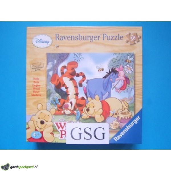 Houten puzzel van 30 stukjes met als thema lentepret met Winnie van het merk Ravensburger. Zit nog in de ongeopende originele verpakking.
