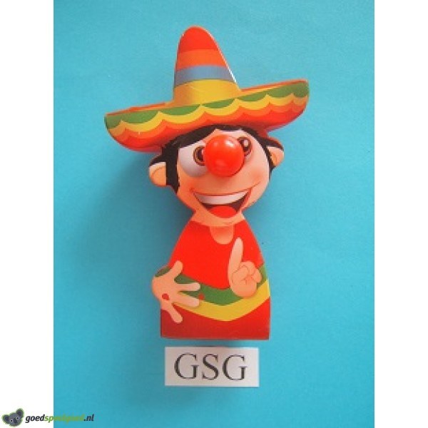 Uit de collectie van de Rode Neuzen Moppenfestival van de Efteling is dit de Mexicaan. Dit figuurtje is afkomstig uit 2016.