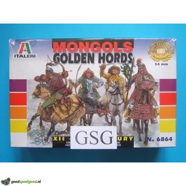 In de eerste jaren van de 13e eeuw verenigde Genghis Khan de Mongoolse stammen, die het Mongoolse rijk oprichten, en leidden hen om het grootste deel van China, Centraal-Azië, Rusland en het Midden-Oosten te overwinnen. Zijn legers bezetten ook een goed deel van Europa, die zou uitgroeien tot een van de grootste rijken in de geschiedenis. Zijn cavalerie-eenheden, met name zijn paardboogschutters, waren de elite troepen van Genghis Khan en waren in staat om met vurige maar goed gecoördineerde aanvallen terreur in de harten van hun vijanden te boezemen. De 8 figuren (8 ruiters en 8 paarden) in deze doos zijn 45 mm groot. Zit nog nieuw in de verpakking (aan de sprue) maar het doosje is wat “vervormd”.