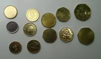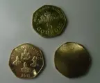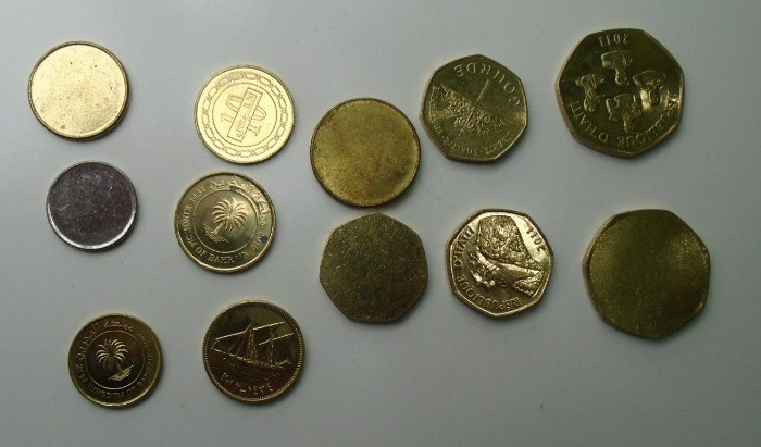 Muntgeld, dit zijn afgekeurde munten uit Haiti en Bahrein, geen wettig betaalmiddel, sommige munten zijn blanco zonder opdruk.